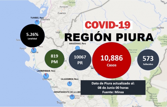 Región Piura tiene 10,886 casos confirmados de Covid-19 y 573 fallecidos según Minsa