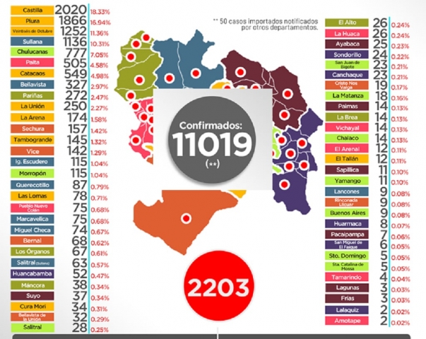 Según DIRESA la región Piura tiene 11,019 casos de Covid-19 y 731 fallecidos