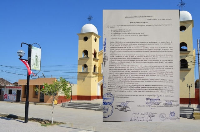 ERP. El distrito de Tambogrande, provincia de Piura, tanto como otros de la región y del país, enfrenta con pérdidas de vidas humanas la pandemia por el coronavirus; además, su establecimiento de salud ha colapsado y no existe medicina, oxígeno, médicos, camas de hospitalización, que amerita una pronta acción, responsabilidad que corresponde resolver al Gobierno Regional de Piura y otras instancias centrales.