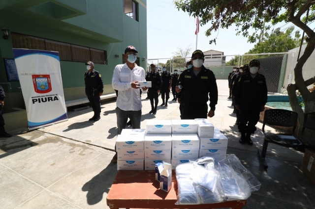 Alcalde de Piura realizó donación de mascarillas certificadas a Policía, Cesamica y reservistas