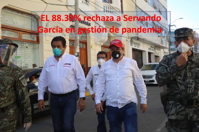 ERP. La población de la región Piura, rechaza casi en su totalidad la gestión frente a la pandemia del gobernador Servando García Correa, según estudio virtual realizado del 17 al 20 de mayo por la encuestadora Piura Data Consultores S.A. De acuerdo a los resultados, la población piurana que aprueba las acciones realizadas son el 3.87%; lo desaprueba el 88.39%; no sabe/ No opina 7.74%.