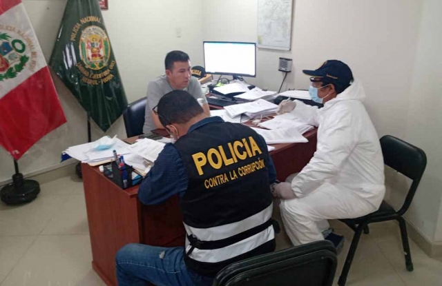 ERP. Como parte de las diligencias de investigación en el caso del servicio de fumigación cuestionado en las dependencias policiales de Piura y Tumbes; el Fiscal José Jiménez Moscol de la Fiscalía Especializada en Delitos de Corrupción de Funcionarios de Piura, realiza la incautación de documentos en la oficina de logística de la Macro Región Policial de Piura, ello con apoyo del personal policial de la DICOCOR.