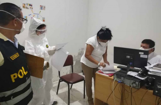 ERP. La Fiscal Adjunta Especializada en Delitos de Corrupción de Funcionarios, Marita Bayona, a cargo de la investigación por la presunta sobrevaloración en la compra de los ventiladores del Hospital Santa Rosa, provincia de Piura se encuentra en las oficinas del área de logística de dicho nosocomio incautando documentos con información importante para la investigación.