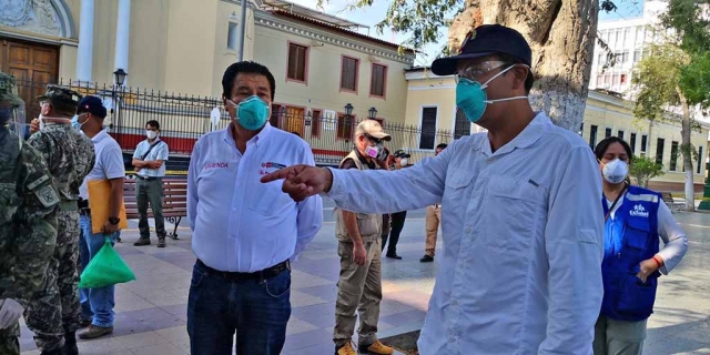 ERP. El alcalde de Piura, Juan José Díaz Dios, acompañado del ministro de Vivienda, participa en estos momentos de la toma de pruebas rápidas a trabajadores de diversas entidades bancarias, farmacias, centros comerciales, y otros en el centro de la ciudad de Piura.