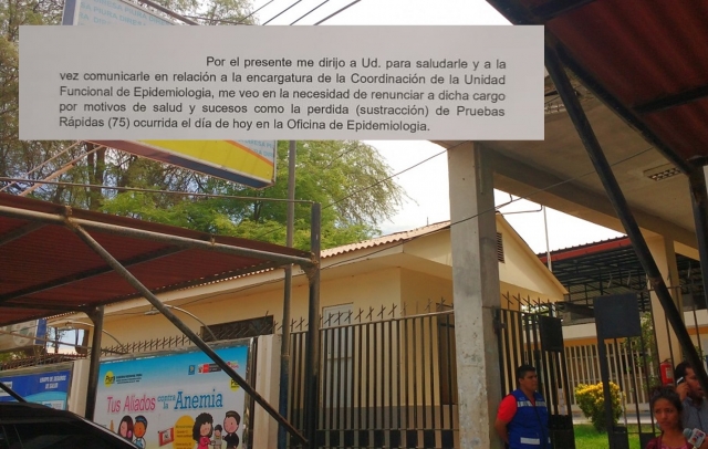 ERP. Una sustracción incomprensible y un hecho lamentable. El encargado de la coordinación de la Unidad Funcional de Epidemiología de la Diresa- Piura, decidió renunciar a la encargatura que venía desempeñando, primero por motivos de salud y además, por la pérdida o sustracción de 75 pruebas rápidas que se encontraban en su poder; hecho ocurrido en la Oficina de Epidemiología.