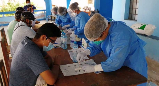 ERP. La Municipalidad de Piura en coordinación con la Dirección Regional de Salud realizó, en las instalaciones de la biblioteca municipal, las pruebas de sangre a más de 130 miembros de Serenazgo para descartar más casos de COVID-19.