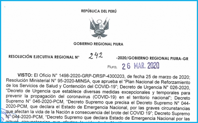 ERP. Muchos critican en estos momentos al gobernador regional de Piura Servando García Correa, por su falta de liderazgo y limitada pertinencia para dirigir las acciones de emergencia nacional dispuestas por el gobierno; sin embargo, es la propia población, la que realiza acciones que desdicen la real actitud de los piuranos en esta emergencia declarada para controlar el Covid-19 o coronavirus.