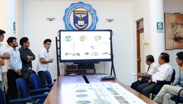 ERP. Una buena iniciativa desde las aulas universitarias. Cinco estudiantes de la Facultad de Arquitectura y Urbanismo (FAU) acompañados del Decano de esta facultad, Dr. Miguel Adrianzén Huancas, expusieron ante las autoridades universitarias la propuesta general del planteamiento de reactivación del camino real que cruza el campus de la Universidad Nacional de Piura.
