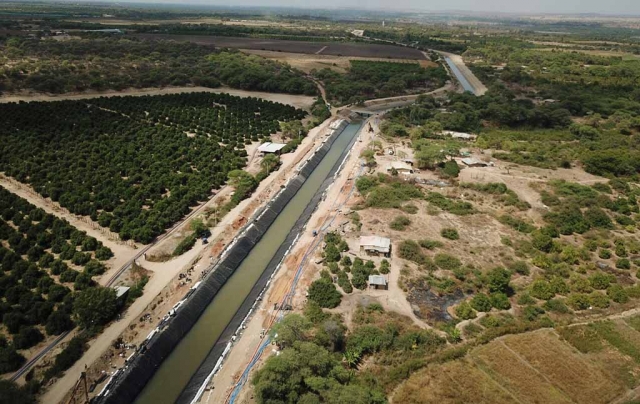 ERP. Después de casi cuatro días de intenso y continuo trabajo de instalación de geomembranas a lo largo del canal “Daniel Escobar”, el ministro de Agricultura y Riego, Jorge Montenegro anunció que la infraestructura quedó operativa y desde tempranas horas de hoy desplaza agua hacia las plantas de tratamiento de Curumuy y de Sullana, donde se realiza el proceso de potabilización.