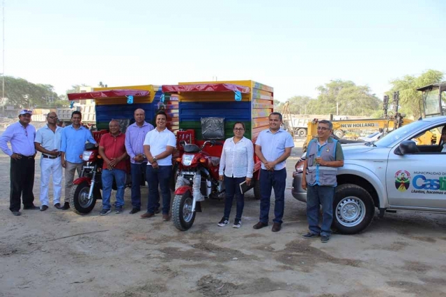 ERP. En el marco del proceso de equipamiento, el alcalde de Castilla José Aguilar Silva entregó esta tarde una camioneta y dos motofurgones que estarán al servicio de acciones de salud, ornato y supervisión. La actividad se cumplió en el área de Maestranza donde el gerente de Servicios Públicos Locales recibió la flamante y moderna maquinaria.