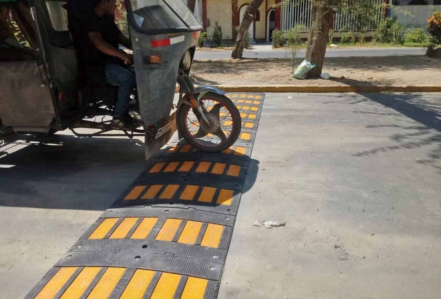 ERP. Cuatro reductores de velocidad han sido instalados hoy en el cruce vehicular de las avenidas Independencia con Luis Montero, en la zona urbana de Castilla, con el fin de evitar la ocurrencia de accidentes de tránsito por exceso de velocidad.