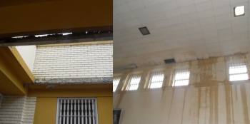 Sólo bastaron las dos primeras lluvias leves pero persistentes para que este establecimiento del Minsa se inunde, colapse e incluso parte del antiguo techo se desplomara por la humedad. Los trabajadores han informado que el agua de lluvia ha filtrado por el techo y ha discurrido por las paredes de la mayoría de ambientes, en los servicios de admisión, centro de hospitalización de obstetricia, centro quirúrgico, Rayos X, Laboratorio, sala de conferencias, consultorios externos, entre otros.