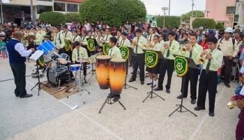ERP. Especialistas de música y danzas tuvieron a cargo la evaluación de los participantes de I Concurso Interescolar de Bandas y Danzas Folclóricas. Un colorido espectáculo de música y danza ofrecieron las delegaciones de diez de los colegios más representativos de Talara, los cuales se dieron cita en la Plaza Grau de Talara para participar en el I Concurso Interescolar de Bandas y Danzas Folclóricas, organizado por PETROPERÚ como parte del programa de celebraciones por el Centenario de Refinería Talara.