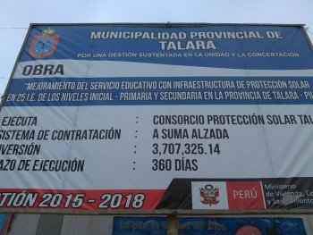 Hace algunos días, se informó que el gremio de construcción civil denunció a algunos medios de comunicación, un presunto favorecimiento a una empresa del contratista Rafael Pasco, quien habría dejado abandonada la construcción de una institución educativa en el populoso sector de Mario Aguirre. Según los denunciantes, ahora se le habría premiado adjudicándole el mejoramiento e instalación de protección solar en 25 colegios de Talara, con un presupuesto de aproximadamente 4 Millones de Soles.