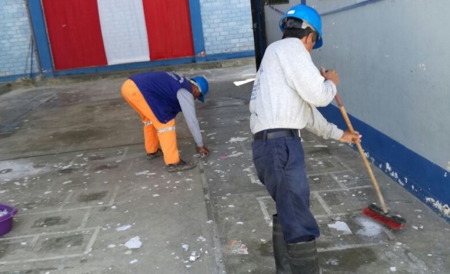ERP. El jefe zonal de Talara Ing. Jorge Gómez de la EPS Grau S.A. informó que, el último martes 01 de agosto se realizaron los trabajos de limpieza y desinfección de los ambientes del colegio inicial IEI Nº.607, los mismos que se encuentran afectados por la demasiada carga del alcantarillado como consecuencia de las lluvias del "Niño costero".