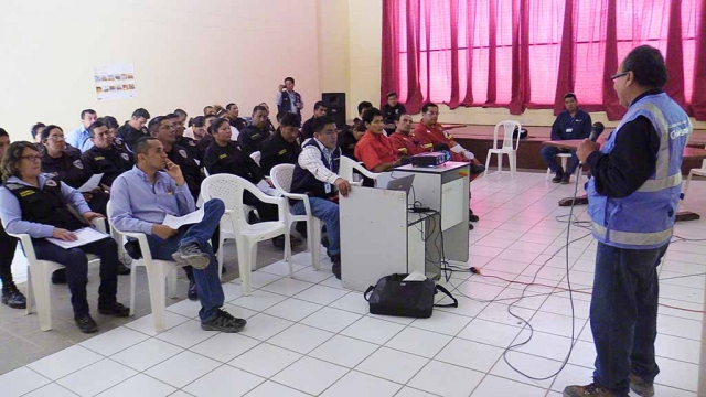 ERP. Efectivos de la Compañía de Bomberos Voluntarios Nº 67 y del servicio de Serenazgo Municipal de Talara recibieron la charla de capacitación y concientización “Prevención de accidentes eléctricos en locales públicos”, organizada por la Oficina de Defensa del Consumidor de la Municipalidad Provincial de Talara, en coordinación con Osinergmin.