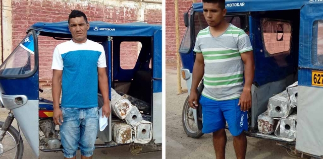 Se trata de los mototaxistas, Manuel Ángel Alarcón Yanayaco (26) y Richard Stewart Estrada Infante (26), quienes a bordo de las mototaxis de placas 6274-7P y 8967-2P, transportaban 8 barras de zinc.