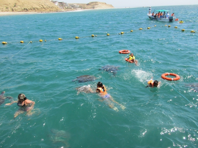 La tortuga verde es una especie de tortuga marina de la familia Cheloniidae; en el caso del Ñuro, se desplaza con toda tranquilidad, juguetea con los turistas, no se aleja y al contrario logra una interacción con quienes visitan este lugar y se sumergen para tocar y sentir su caparazón. Son totalmente inofensivas y permiten que haya cercanía con el ser humano.
