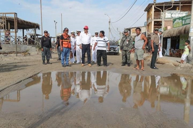 ERP. El Ministro de Defensa, José Huerta, arribó la tarde de ayer al distrito de Máncora, en compañía del Comandante General de la Marina de Guerra del Perú y representantes del Instituto Nacional de Defensa Civil Perú, para constatar daños ocasionados por oleaje anómalo ocurrido el último fin de semana y atender necesidades de la población.