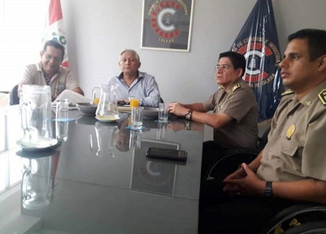 Fue durante una reunión que sostuvieron los empresarios afiliados a la Cámara de Comercio e Industria de Talara, con el Coronel PNP Edward Rando Espinoza López, de la Región Policial de Piura y el comisario de Talara Alta, Mayor PNP Omar Cevallos, en que se dio a conocer del incremento de asaltos a mano armada por parte de bandas delincuenciales a las oficinas o talleres de algunos empresarios, al igual de recibir llamadas telefónicas para amenazarlos de muerte si no les pagan un bono de miles de soles.