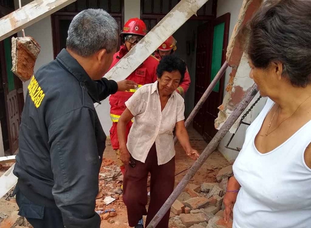La afectada dijo que, la vivienda hace años por la inclemencia del tiempo y las fuertes lluvias registradas en los últimos Fenómenos del Niño y Costero, generó algunos deterioros como la rajadura de paredes y englobamiento del techo aligerado de los distintos ambientes. Sin embargo aseguró que el fuerte movimiento sísmico registrado el último domingo por la madrugada, ha sido el detonante para que el techo principal de ingreso se desplome, poniendo en peligro a toda su familia ante la posibilidad de que esta se venga abajo en su totalidad, por lo que pide a las autoridades de la provincia le brinden la ayuda correspondiente a fin de poder abandonar la casa y reubicarse en un lugar seguro.