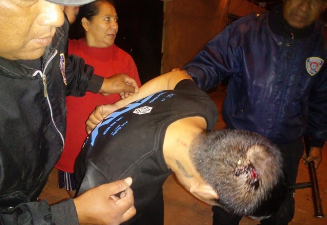 De inmediatamente lo auxiliaron y fue identificado como Luis Ángel Piedra Martínez (45), quien narró que tres individuos provistos de armas ingresaron minutos antes y lo golpearon dejándolo inconsciente; pero al escuchar la sirena de la unidad, salieron huyendo del lugar.