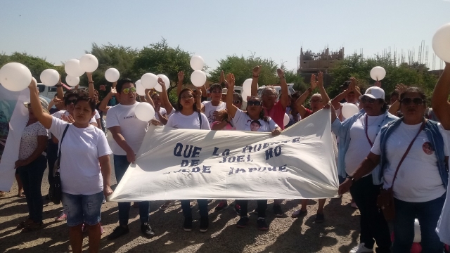 A su paso por la avenida Bolognesi. la madre de Joel García, solicitó a los concurrentes a prestar un minuto de silencio en memoria de su hijo, para luego continuar con el recorrido por las instalaciones del Poder Judicial donde solicitaron se castigue con todo el peso de la ley al autor de la muerte del joven enfermero y concluir en la Segunda Fiscalía Provincial Penal Corporativa de Talara, donde mostraron su indignación al tener conocimiento que Rosa Amaya Risco había recibido una citación para que este miércoles 12 de junio el occiso se presente para esclarecer lo ocurrido.