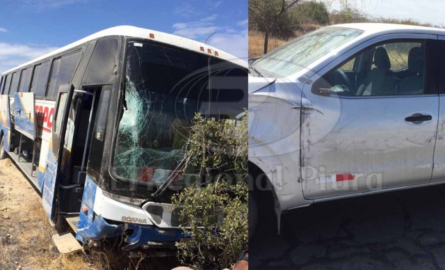 El accidente de tránsito que podo terminar en tragedia se produjo el último domingo en el Km 106 de la Panamericana Norte –Inmediaciones del distrito de El Alto- donde por casusas que son materia de investigación policial, la camioneta plateada de placa APM-842 conducida por el extranjero Tiago José de Moura Loureiro (34) chocó contra el lateral del ómnibus de la empresa Eppo de placa A3P-966, la cual era piloteado por Giussepi Fabián Camacho Mendívez (44) y quien llevaba al menor 40 personas procedentes de Piura y que se dirigían hacia los distritos de Los Órganos y Máncora.