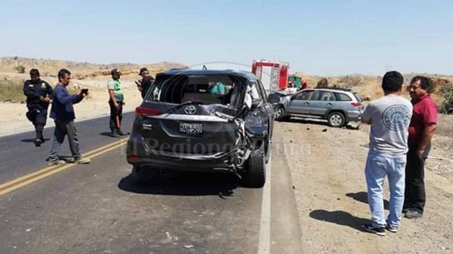El accidente de tránsito se produjo la tarde del sábado en el sector de Santa Lucía, ubicado en la Panamericana Norte de la vía Sullana - Talara –lugar conocido como Pasamayito-, donde el auto gris de placa MXH – 589 colisionó de manera frontal contra el vehículo ASC-814.