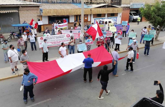 Durante la marcha, los trabajadores con pancartas y banderolas en mano, realizaron plantones en las oficinas principales de Petroperú, Ministerio Público, Gobernación Política, Municipalidad Provincial y el Juzgado Laboral de Talara, exigiendo su pronta reposición en sus puestos de trabajo.