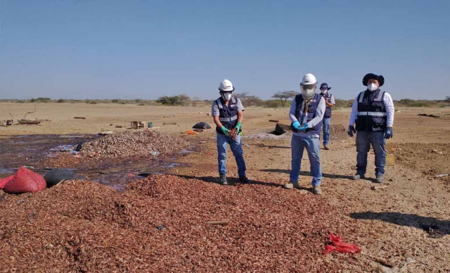 ERP. La fiscalía especializada en materia ambiental de Sullana, realizó un operativo en la ciudad de Talara, para intervenir, en una zona descampada, donde se venía realizando el secado en pampa de productos hidrobiológicos, en este lugar se encontró 8 mil kilos del mencionado producto.