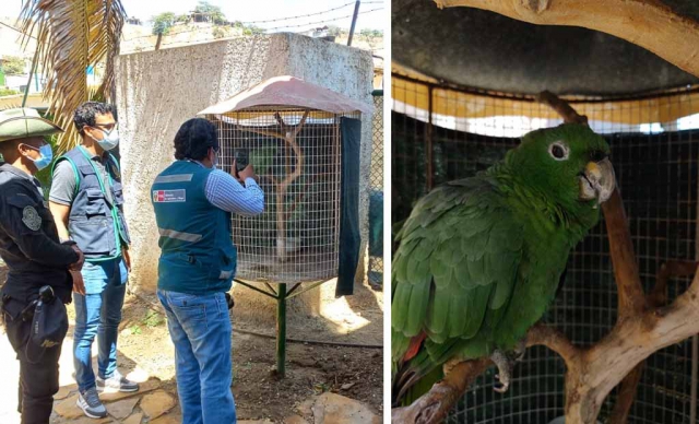 Durante la diligencia cargo del fiscal adjunto de la mencionada fiscalía, Dr. John Beyker Albán Frías, en el Restaurante La Espada, de propiedad de Pedro Luís Maceda Otero, ubicado en Av. Piura 501 - Máncora, las autoridades encontraron un Loro Verde (amazona farinosa) y una tortuga Motelo, (chelonoidis denticulata) sin que acredite su procedencia legal.