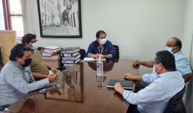 Para entrarle una salida al colapso del sistema de desagües, el burgomaestre mancoreño se reunió con el titular de la EPS Grau, Roberto Sandoval Maza, estando también presentes el Director Regional de Vivienda y Urbanismo, Arq. Gerardo Gonzales Arévalo, el Consejero Regional por Talara, Yasser Arámbulo Abad y un Gerente Técnico de Enosa.