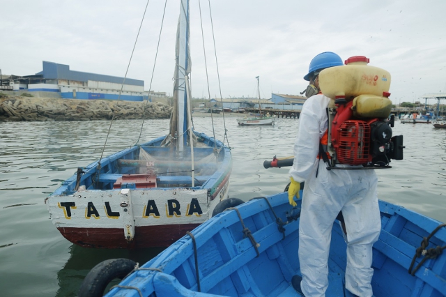 De esta manera, la empresa del Estado, en coordinación con el Gremio de Pescadores San Pedro y la Subgerencia de Servicios Públicos de la Municipalidad de Talara, realiza, desde el pasado 14 y hasta el jueves 20 de enero, la desinfección de las instalaciones del desembarcadero de San Pedro; de 300 embarcaciones artesanales veleras y la de los cinco principales mercados de la ciudad petrolera (Mercado Modelo, Mercado de Talara Alta, Ex Serpetro, Acapulco y Central), desinfectando así 1 650 puestos fijos, lo que equivale a más de 90 000 m2.