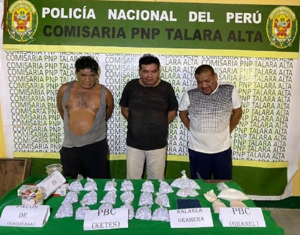 Entre los detenidos se encuentran Pedro Ordinola Ramírez (53) conocido como “El peje”; Francisco Ordinola Ramírez (52) alias “Garrincha”; Luis Ordinola Ramírez (57) alias “Negro”, quienes realizaban actos de micro comercialización de drogas en el A.H. Jorge Basadre de Talara Alta.