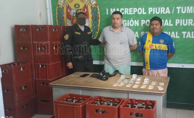 ERP. Personal policial de la comisaría sectorial de Talara intervino la tarde del domingo a dos sujetos -Uno de ellos un agente de seguridad- que habrían sustraído del interior de un almacén de la empresa Backus 30 cajas de cerveza, las cuales se presume ofertarían durante el encuentro del partido de repechaje que se jugará este lunes entre nuestra selección nacional y su similar de Australia.