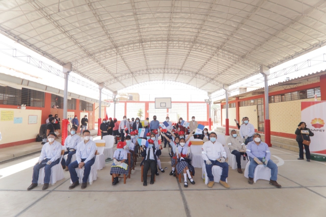 ERP. En el marco de las acciones de Relaciones Comunitarias de Sapet y con el objetivo de mejorar la calidad educativa en la provincia de Talara, se realizó la construcción del techo parabólico en el patio de la Institución Educativa Lobitos, en el distrito de Lobitos, provincia de Talara.