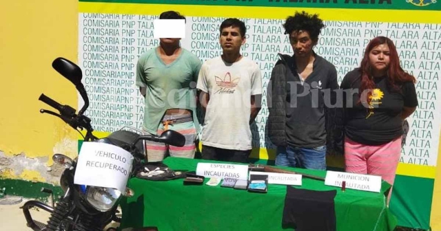 Producto del enfrentamiento, la Policía Nacional logró intervenir a José Arnold Murguía Chunga de 18 años “Borrao Krosty” a quien se le encontró en su poder un cartucho calibre 16, Ángelo Giampierre Martínez Mecola de 31 años “Buitre 2”, al menor de iniciales A.J.C.C de 17 años “Cumpita” y a Enit Katherin Valdiviezo Merino de 18 años “Gorda”. Asimismo los intervinientes hallaron en el interior del inmueble un arma de fabricación artesanal (escopeta) de aproximadamente 60 cm, con guardamano de madera de color marrón y empuñadura de metal y la mototaxi amarillo/azul de placa P5-7502.