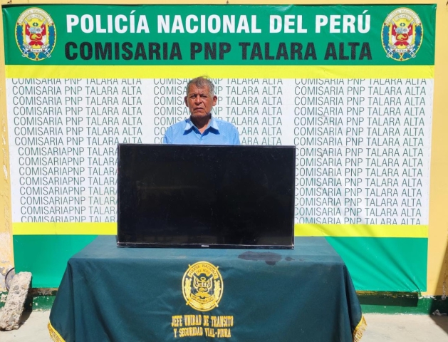 ERP. Talara.-Un sexagenario fue intervenido por la Policía Nacional luego que fuera acusado de haber sustraído un televisor de última generación el cual fue recuperado, siendo conducido a la comisaría de Talara Alta donde viene siendo investigado en presencia del fiscal de turno.
