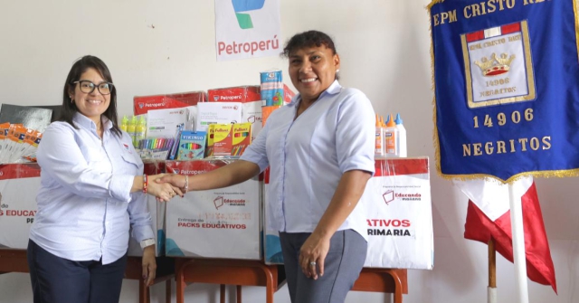 A través de su portal web publicó que, como parte de su compromiso voluntario de Responsabilidad Social, la estatal petrolera realizó la entrega de 341 paquetes con material educativo a 22 instituciones educativas públicas de los distritos de Pariñas y La Brea, en la provincia de Talara.