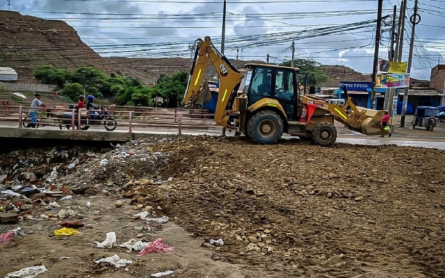 ERP. Personal contratado para realizar trabajo de gestión del riesgo de desastres del gobierno municipal de Talara ejecutó, este jueves, labores para reforzar la base del puente Víctor Raúl cuya infraestructura ha sido bastante afectada por las lluvias caídas en esta ciudad desde el mes de marzo.