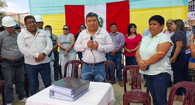 ERP. Las principales autoridades locales encabezadas por el alcalde provincial Jhony Zárate Vite, un buen número de pobladores del AH Jesús María y dirigentes de juntas vecinales, este martes hicieron entrega del terreno y se colocó la primera piedra donde se reconstruirá una nueva infraestructura deportiva.