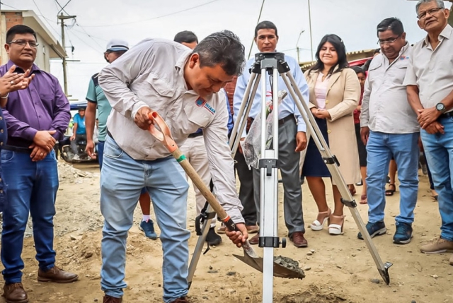 ERP. Contando con la presencia de varios regidores, el gerente municipal y vecinos del sector, esta mañana, el burgomaestre provincial de Talara Sigifredo Juan Zárate Vite realizó el acto protocolar de colocación de la primera piedra, dando inicio a la ejecución de otra obra.