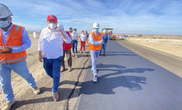 ERP. El gobernador regional, Servando García Correa supervisó los trabajos que se vienen realizando en la emblemática carretera La Costanera, la cual registra un avance de 78.7% en su ejecución, es decir, 16.03% más de su avance programado según cronograma.