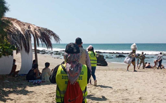 ERP. En un trabajo conjunto con la PNP y el Ejército Peruano, Personal del área de comercialización y turismo de la Municipalidad Distrital de Máncora; llevaron a cabo en el sector de playas un trabajo de concientización a fin de que los veraneantes respeten lo dispuesto en el Decreto Supremo 206-2020 respecto a las restricciones en uso de playa.