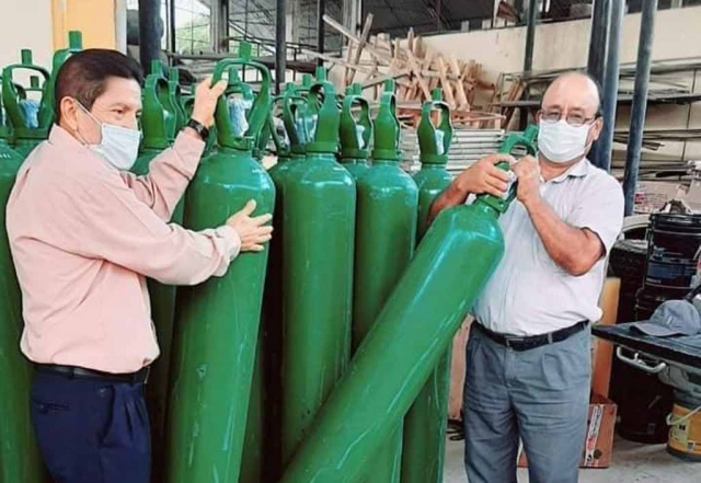 ERP. El Gobierno Regional de Piura, entregó en donación balones de oxígeno medicinal al alcalde Alexander Ramírez Granda, para ser utilizados en casos Covid en pacientes que lo requieran para el restablecimiento de su salud.