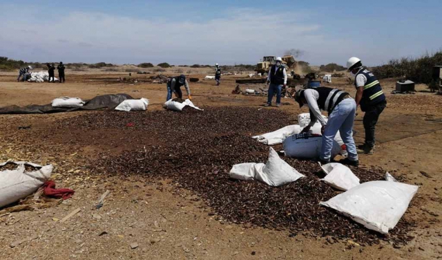 ERP. La mañana del miércoles 16 de septiembre, en el distrito de Pariñas-Talara, la Fiscalía Provincial Especializada en Materia Ambiental de Sullana, dirigió un operativo en un predio donde se realizaba la actividad contaminante de "secado en pampa de más de 17 toneladas de recursos hidrobiológicos a la intemperie".