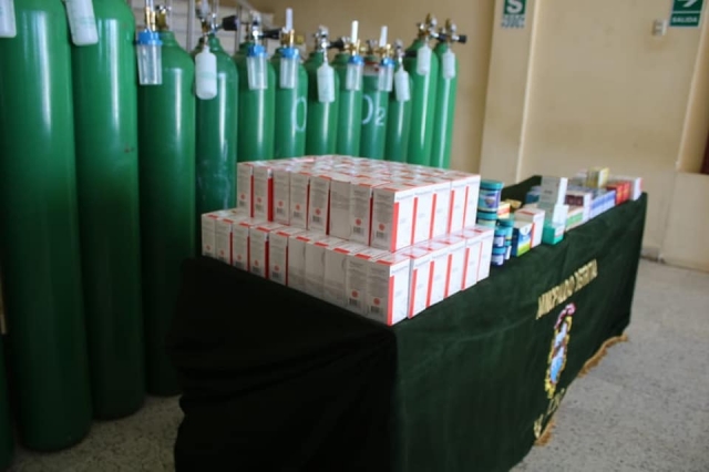 ERP. Adoptando acciones para prevenir contagios por coronavirus. En el marco del desarrollo de actividades preventivas contra el Covid 19, el gobierno local que preside el alcalde Jimmy Montalván Campaña en un acto sin precedentes y mostrando un gran sentido humanitario y proyección social adquirió con recursos propios de la municipalidad un primer lote de medicina y balones de oxígeno.