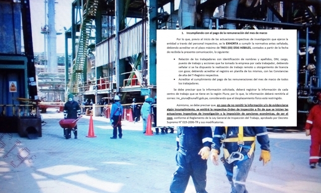 Talara: Sunafil pide informe a empresa Calsol Perú SAC sobre pago de personal