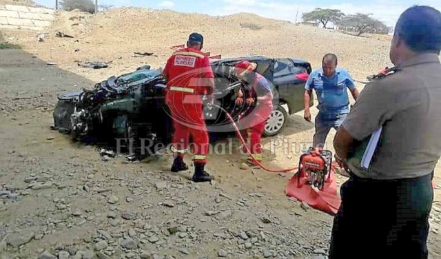ERP. Una persona muerta y otra herida de consideración, fue el saldo de un accidente de tránsito registrado la mañana de hoy en la vía Talara a Sullana, siendo la herida conducida al centro de salud más cercano de esta ciudad, mientras que personal de la compañía de bomberos tuvo que realizar denodados esfuerzos para sacar de entre los fierros de la unidad el cuerpo del chofer fallecido para conducirlo a la morgue para la práctica de la necropsia.